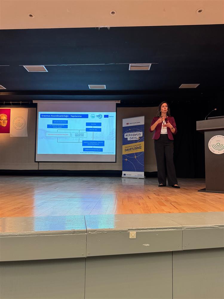 Etkinliklerin ikinci günü olan 14 Ekim 2025 Salı günü, Kültür Merkezi Pembe Salon’da saat 10.30–12.00 arasında Öğr. Gör. Dr. Özlem Yelda DİLMEN tarafından öğrenci öğrenim ve staj hareketlilikleri hakkında bilgilendirici bir sunum gerçekleştirildi.